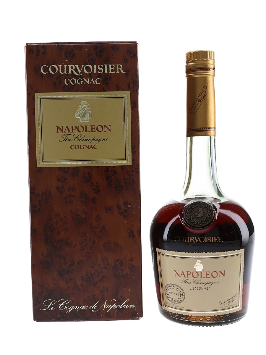 A bottle of Courvoisier Napoleon Fine Champagne Cognac. We estimate this was bottled in the 1980s.