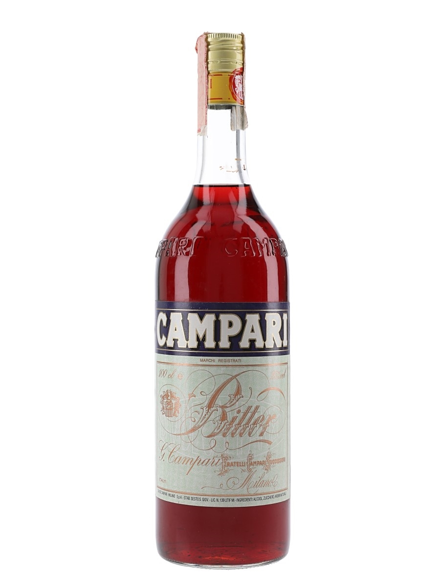 A litre bottle of Campari Bitter liqueur produced in Milan by Davide Campari, we estimate in the 1990s.