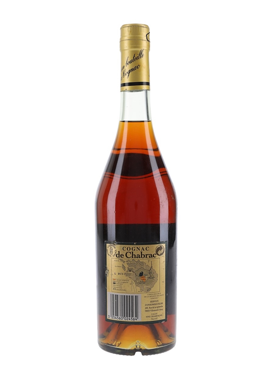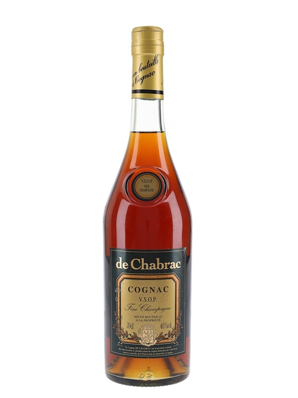 A bottle of De Chabrac VSOP Fine Champagne Cognac. We estimate this was bottled in the 1990s.