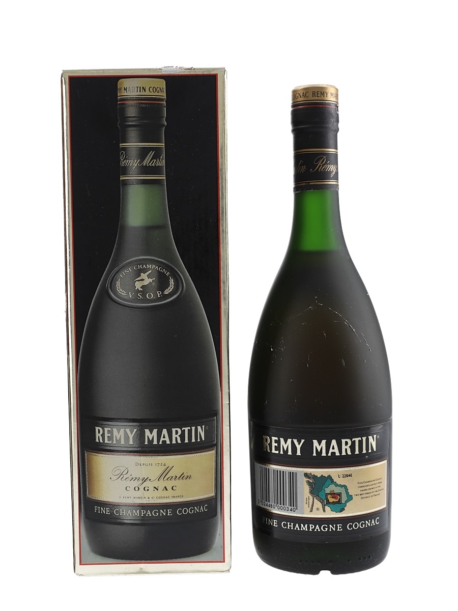 A bottle of Rémy Martin VSOP Fine Champagne Cognac. We estimate this was bottled in the 1990s