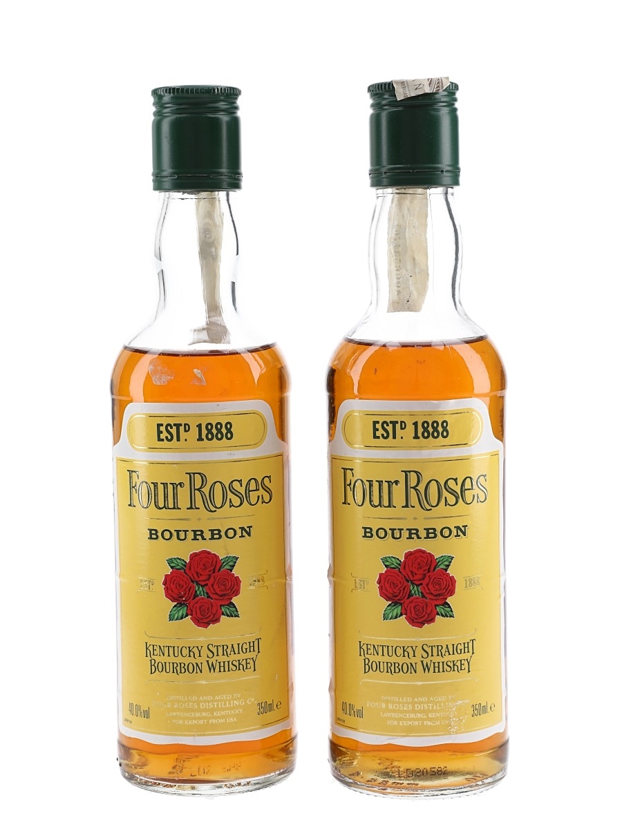 This lot contains two 35cl bottles of Four Roses Kentucky Straight Bourbon Whiskey, distilled and aged in Kentucky.