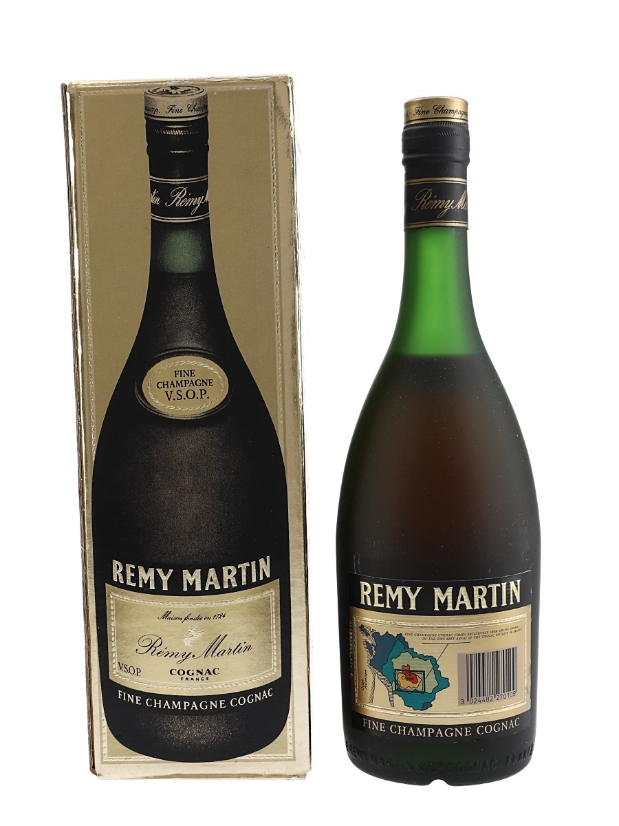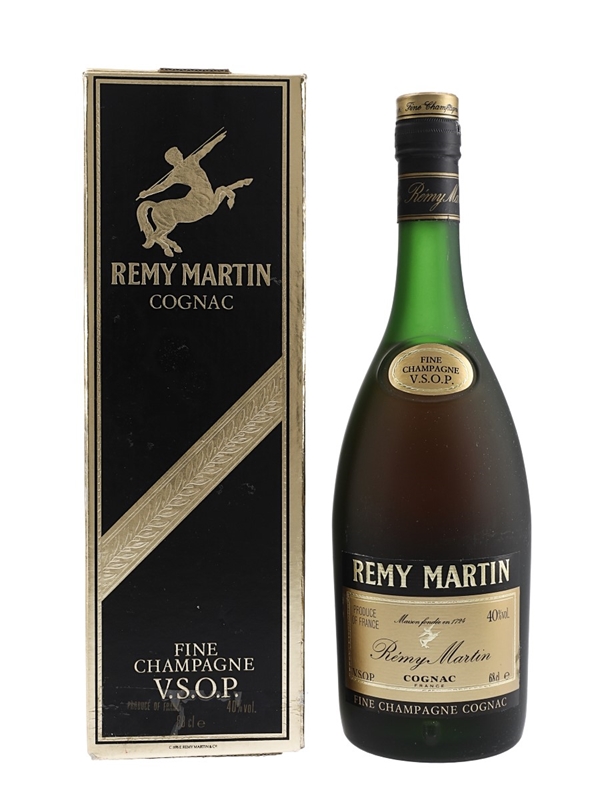 A bottle of Rémy Martin VSOP Fine Champagne Cognac. We estimate this was bottled in the 1980s.