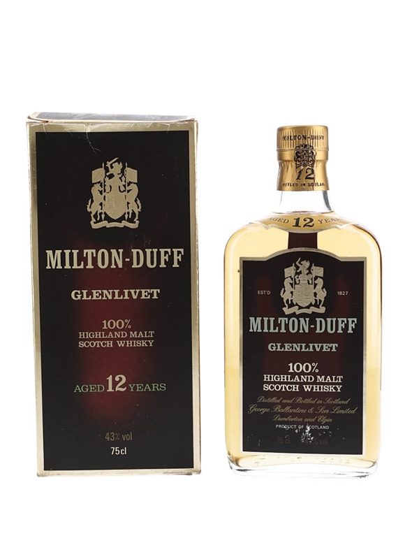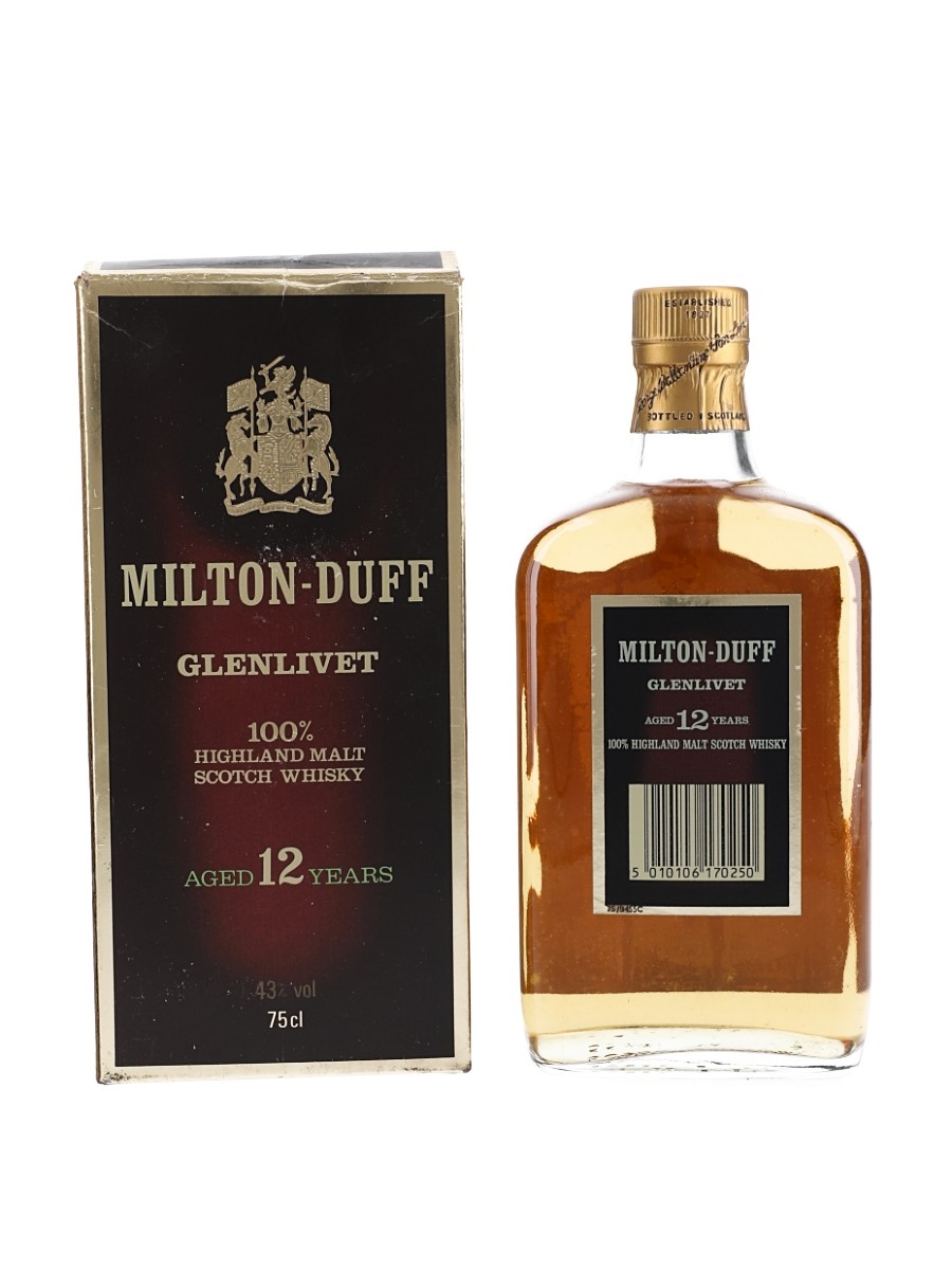 A bottle of Miltonduff-Glenlivet 12 Year Old Highland Malt Scotch Whisky. We estimate that this was bottled in the 1980s.