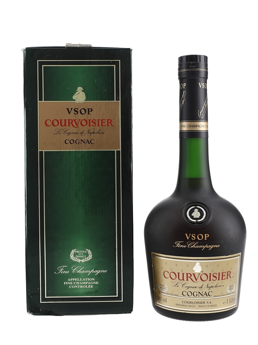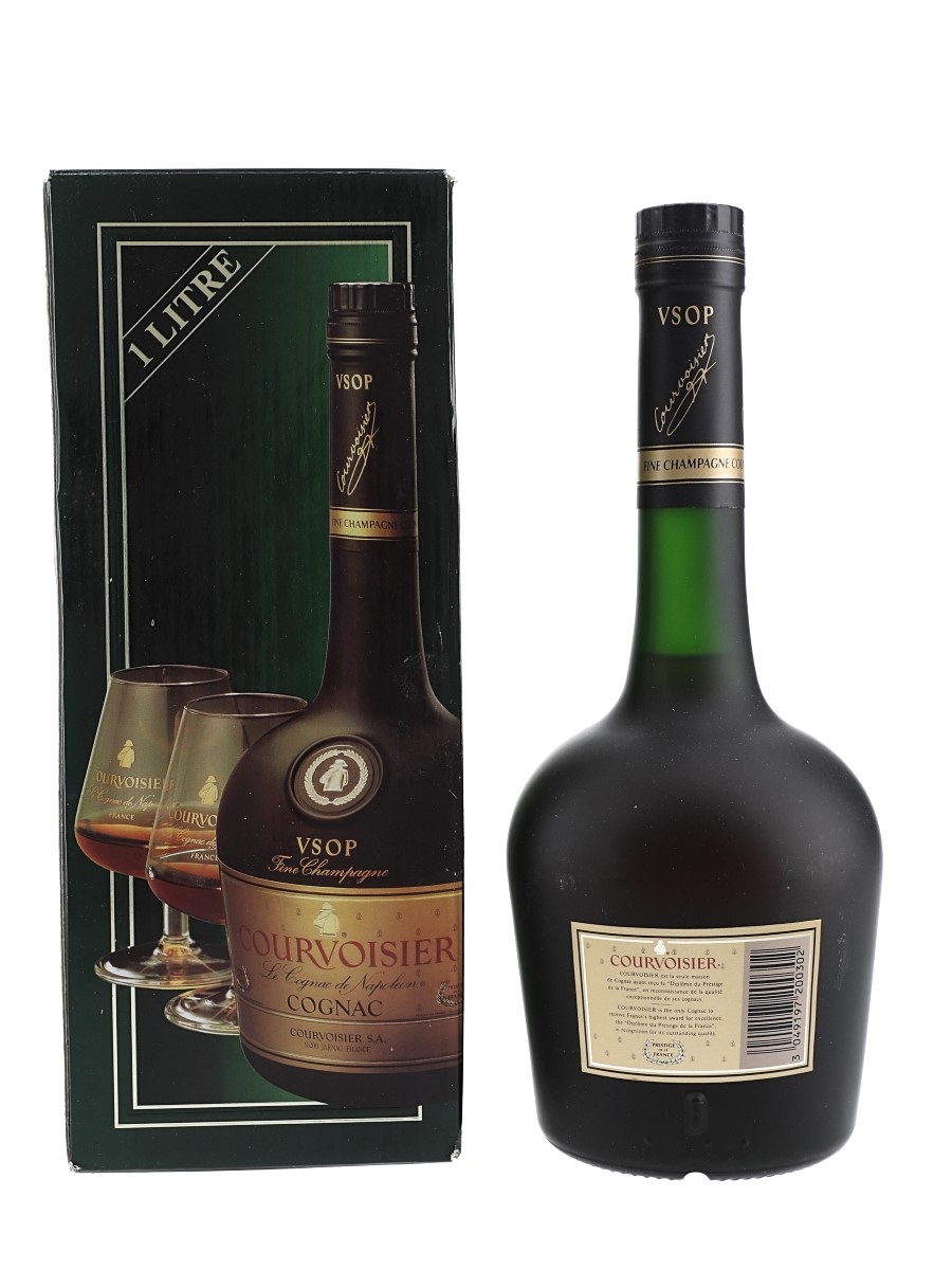 A litre bottle of Courvoisier VSOP Fine Champagne 'Le Cognac De Napoleon' Cognac. We estimate this was bottled in the 1990s.