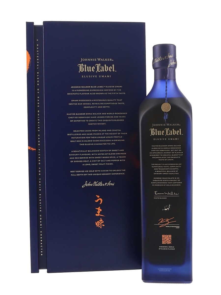 A bottle of Johnnie Walker's Blue Label Elusive Umami. This was made in collaboration with chef Kei Kobayashi.