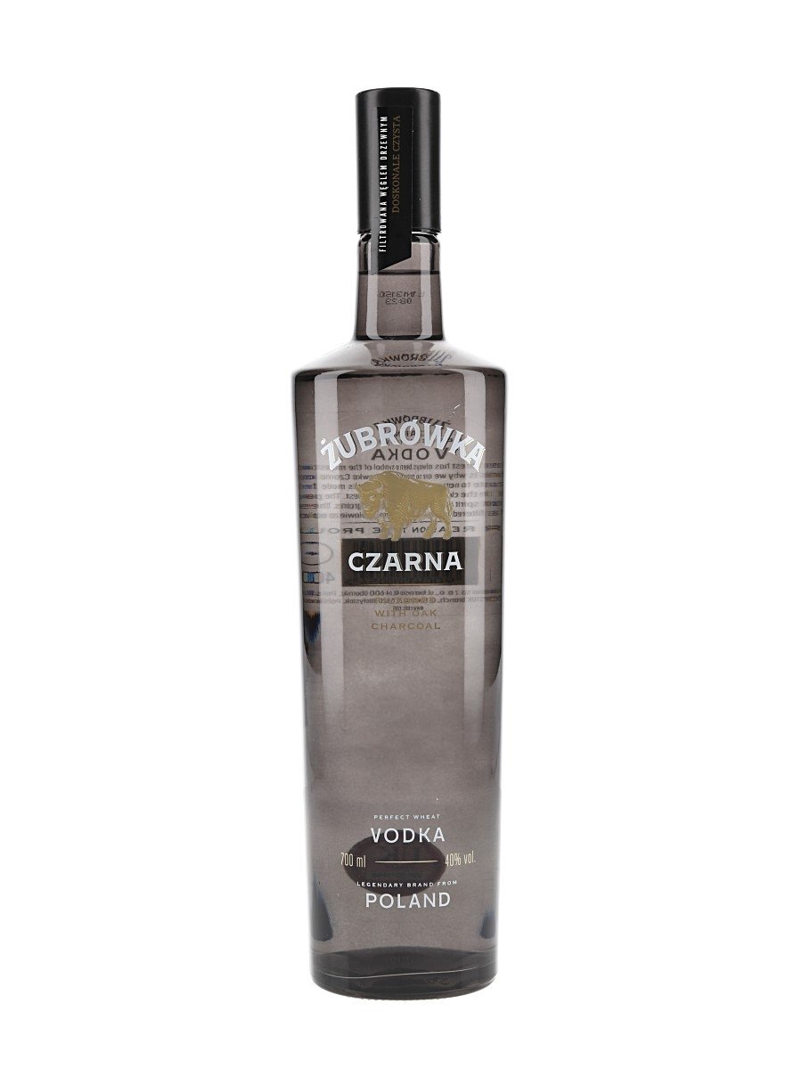 A bottle of Żubrówka Czarna Vodka from Poland.