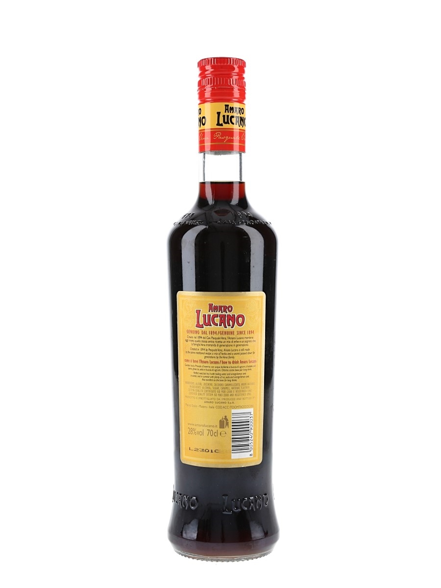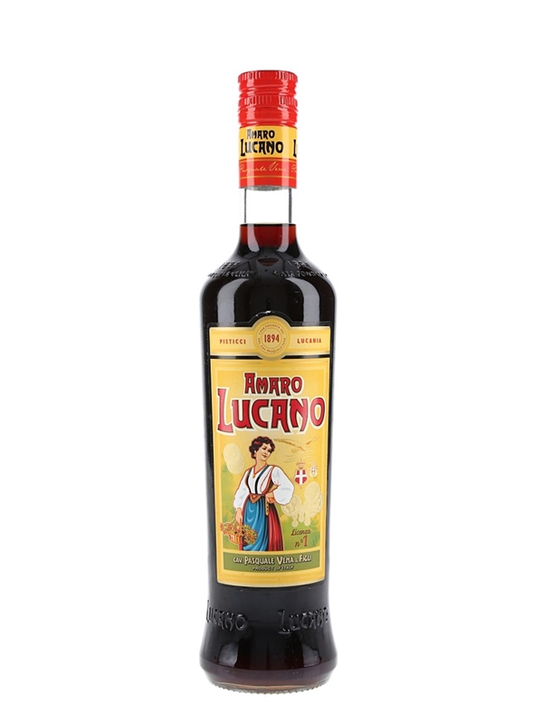 A bottle of Amaro Lucano, a bitter liqueur produced by Cav. Pasquale Vena & Figli.