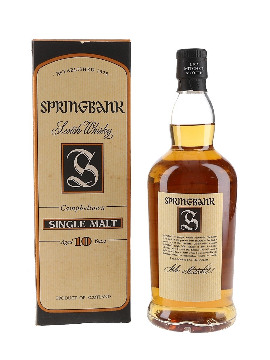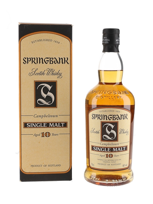 A bottle of Springbank 10 Year Old Campbeltown Single Malt Scotch Whisky. We estimate this was bottled in the early 2000s.
