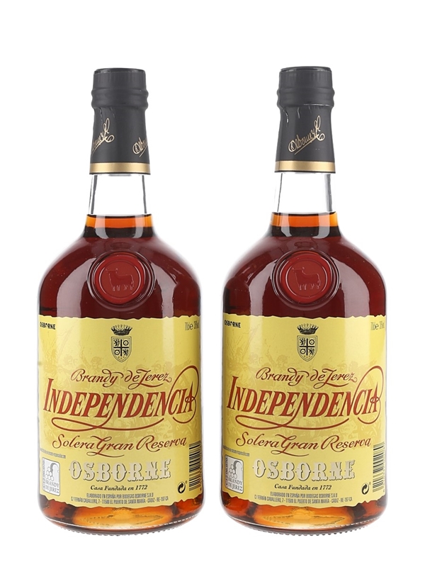This lot contains two bottles of Osborne Independencia Solera Gran Reserva Brandy de Jerez from Spain.