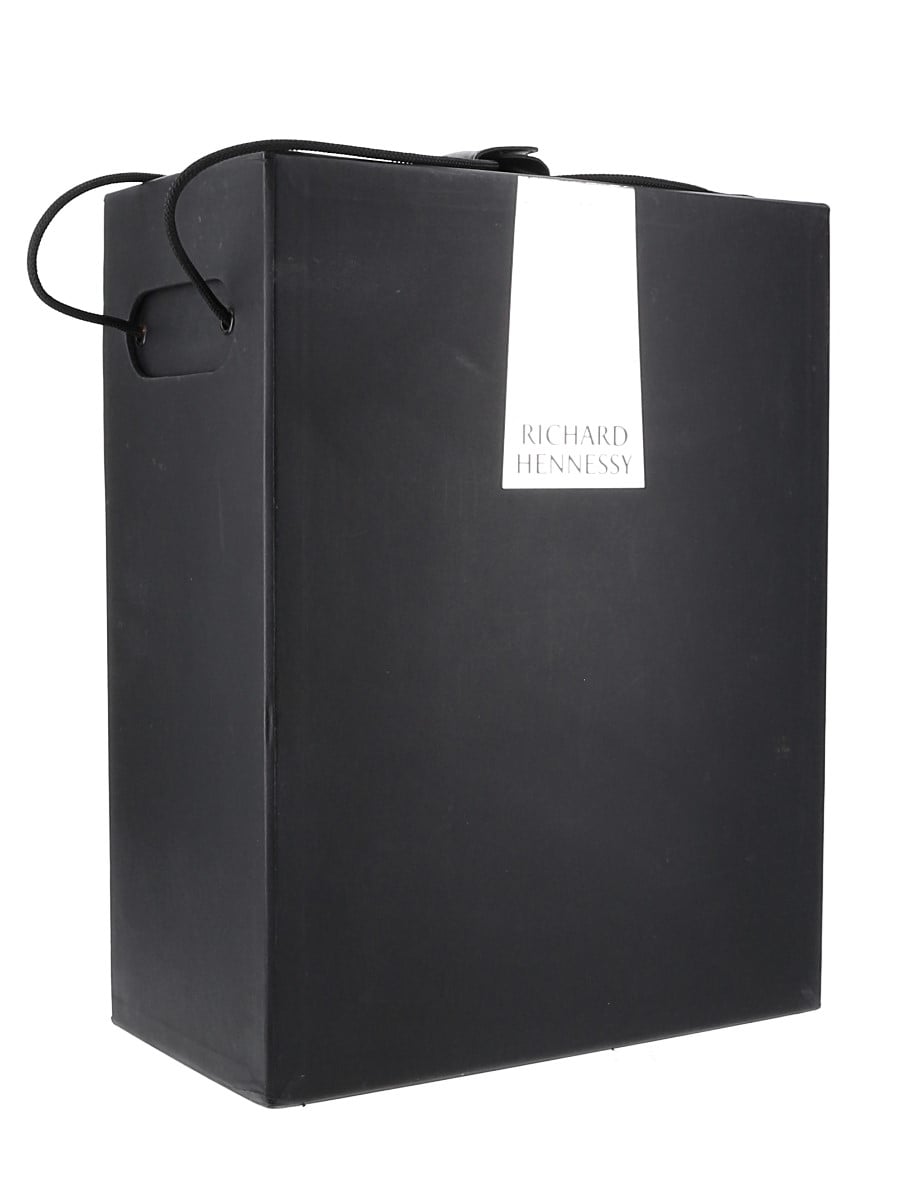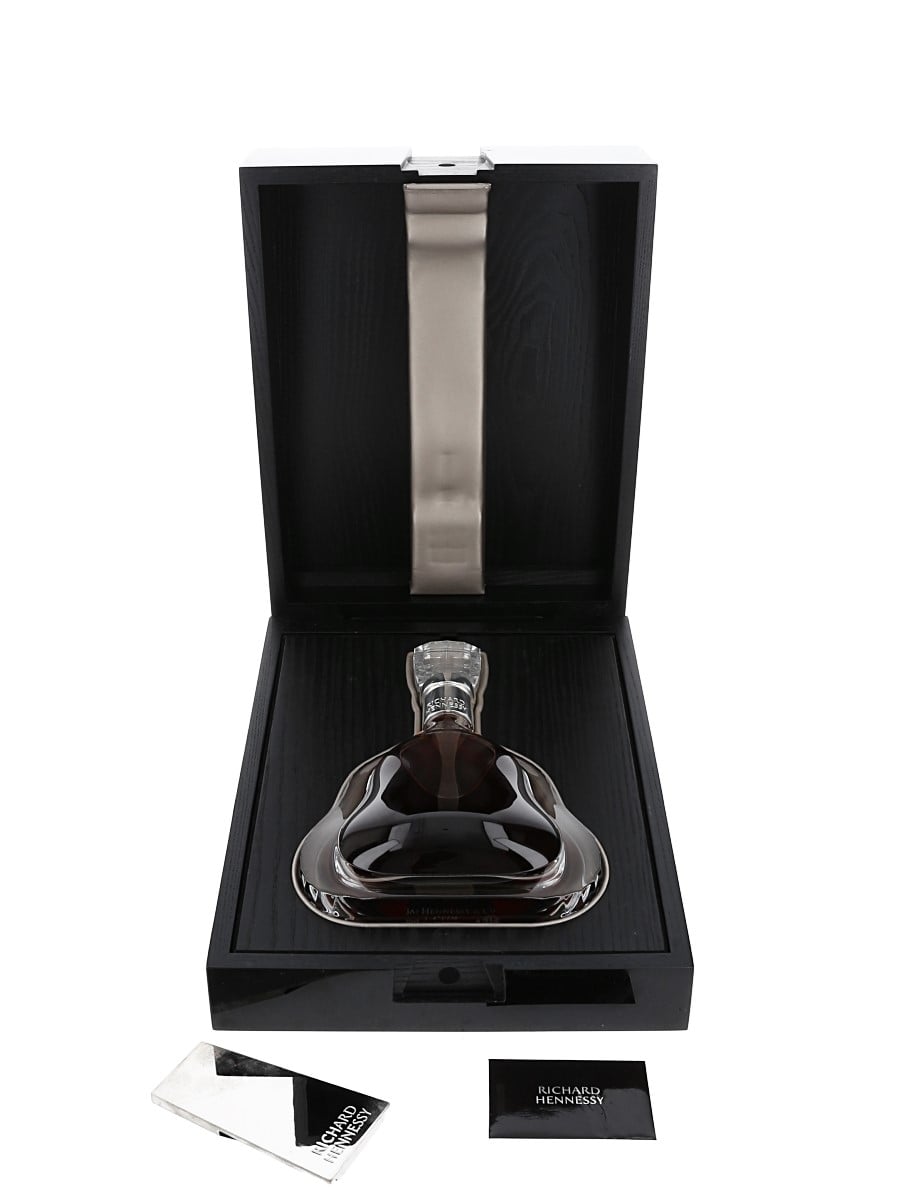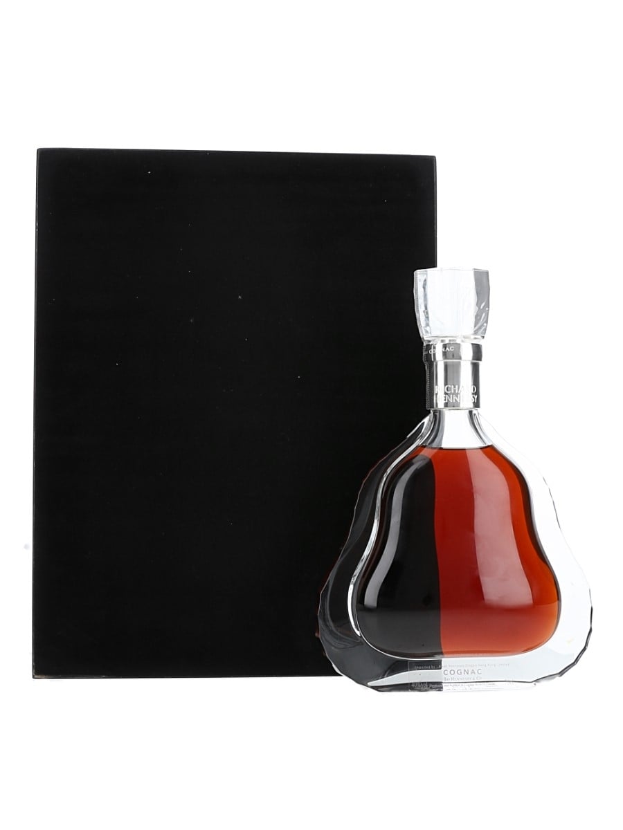 A bottle of Richard Hennessy Cognac Third Edition, blended from eaux-de-vie laid down by successive generations of the Hennessy family and named after the founder of the house. This is presented in a Baccarat crystal decanter.
