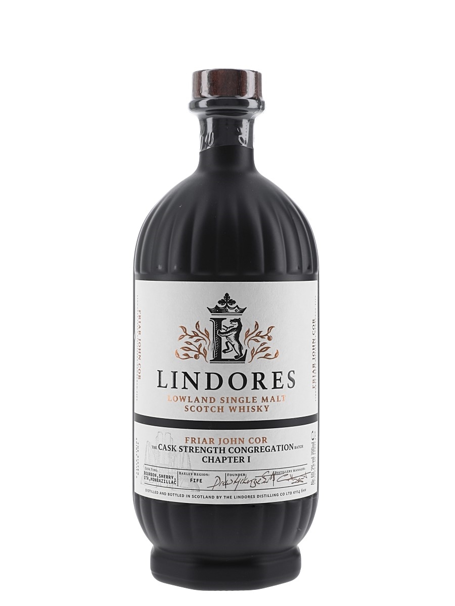 A bottle of Lindores Abbey Friar John Cor The Cask Strength Congregation Batch Chapter 1 Lowland Single Malt Scotch Whisky.