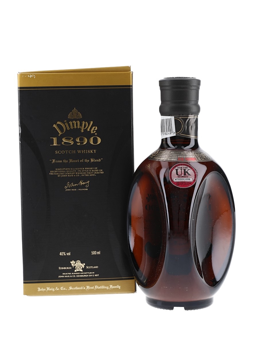 A 50cl bottle of Haig's Dimple 1890 Scotch Whisky in a presentation box. The 1890 is a blend based on the earliest Dimple recipe used by John Haig.