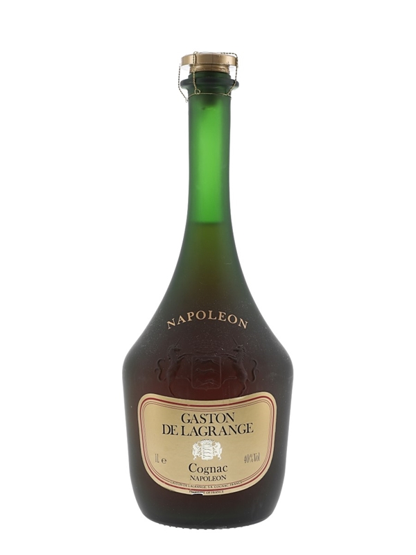 A litre bottle of Gaston De Lagrange Napoleon Cognac. We estimate this was bottled in the 1980s.