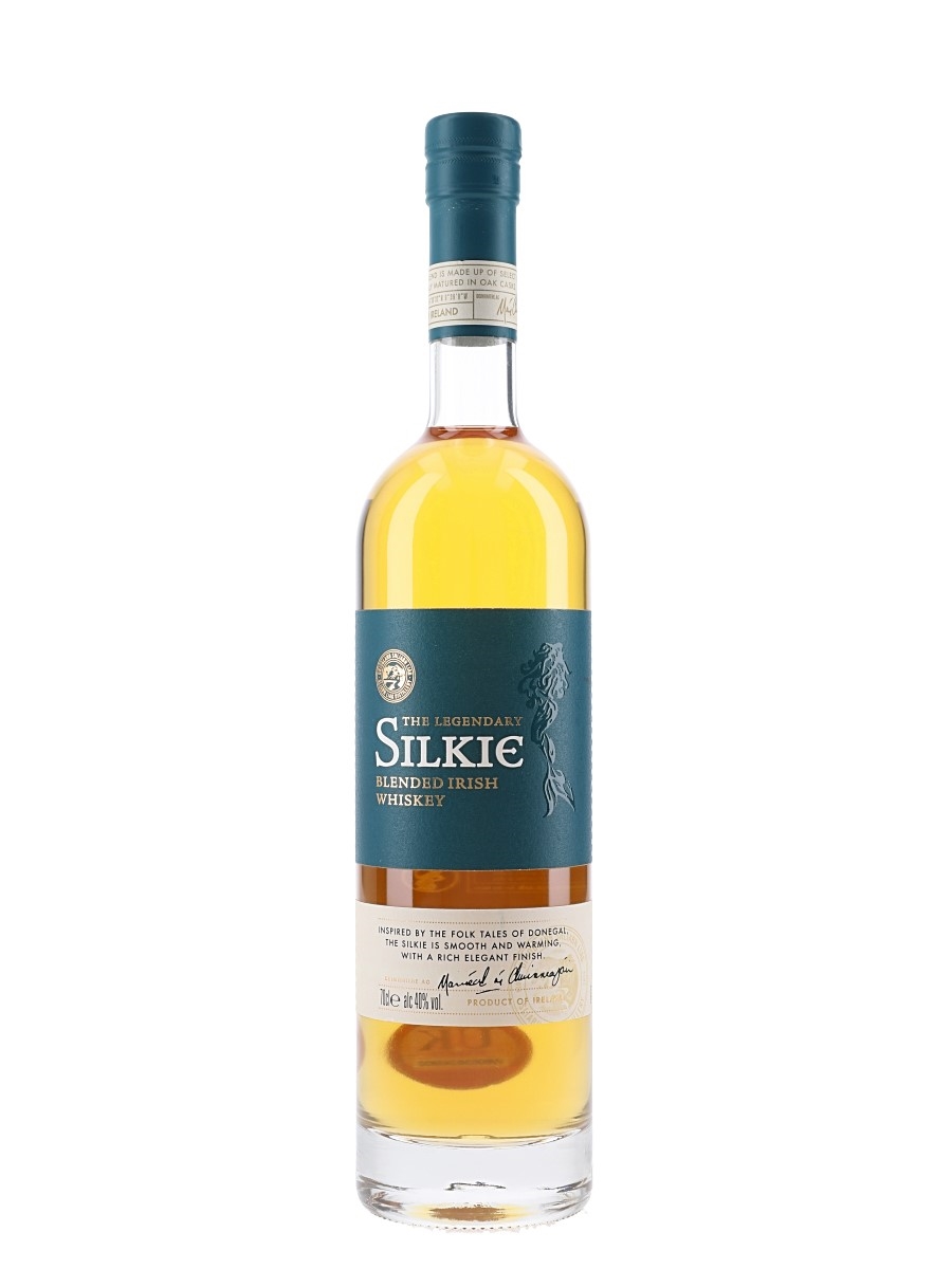 A bottle of The Silkie Irish Whiskey, blended and bottled for Drioglann Sliabh Liag, County Donegal.
