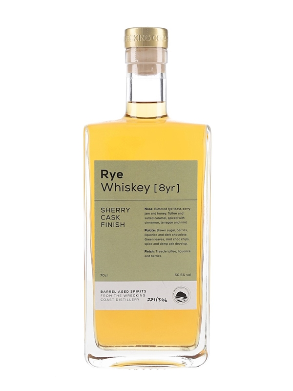 A bottle of Wrecking Coast 8 Year Old Rye Whiskey. This was finished in a sherry cask before bottling at 50.5%.