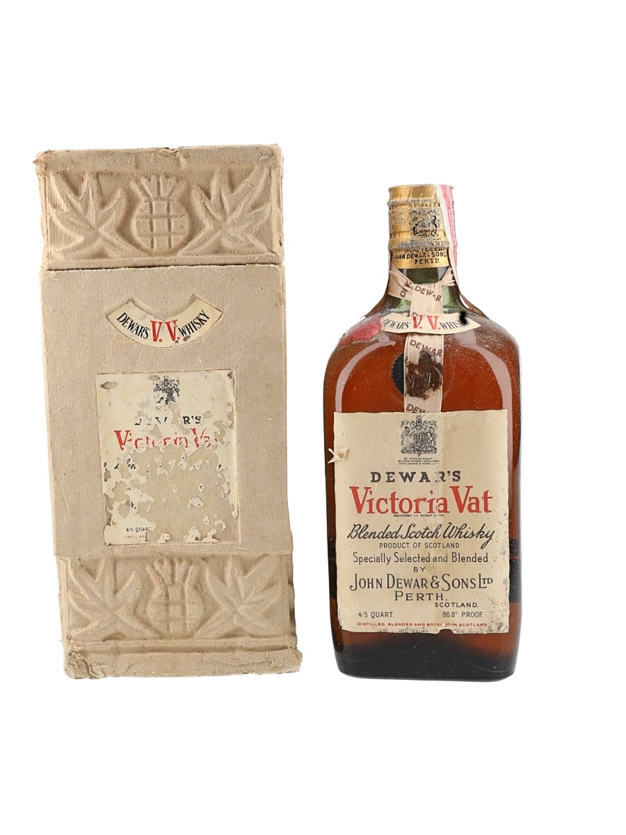 A bottle of Dewar's Victoria Vat Blended Scotch Whisky, specially selected and bottled by John Dewar & Sons and sealed with a spring cap closure. This was bottled for US importer Schenley Import Corporation, we estimate in the 1950s.