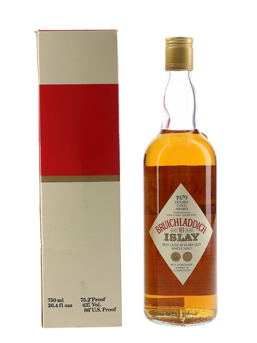 A bottle of Bruichladdich 10 Year Old Single Malt Scotch Whisky. We estimate this was bottled in the 1980s.