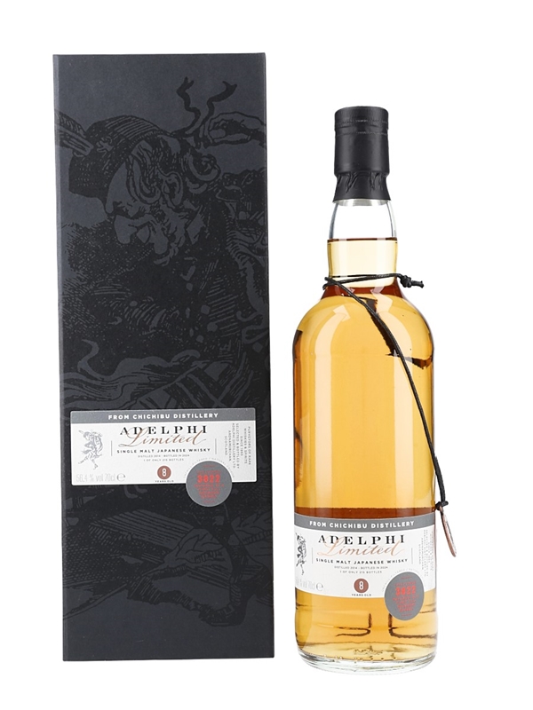 A bottle of Chichibu 8 Year Old Japanese Whisky. This was distilled in 2014, matured in a single cask and bottled by Adelphi in 2024.