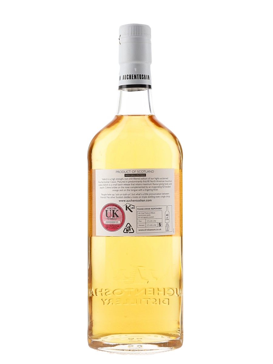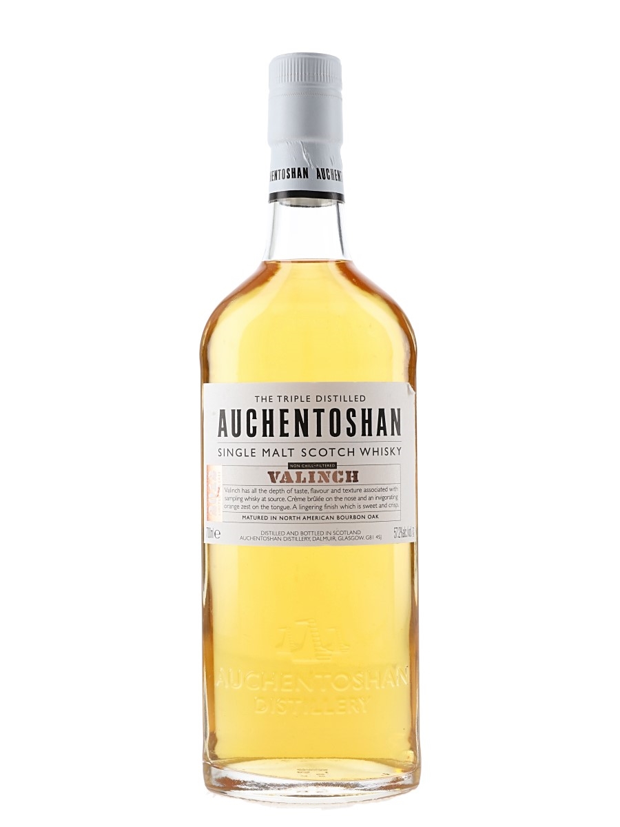 A limited release bottle of Auchentoshan Valinch Single Malt Scotch whisky. This was triple distilled, matured in North American bourbon casks, and bottled in 2012.