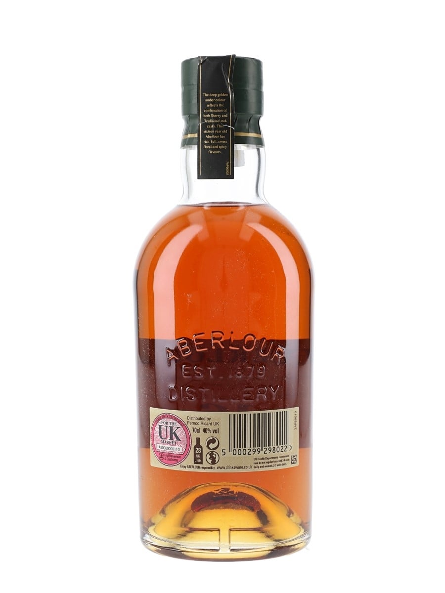 A bottle of Aberlour 16 Year Old matured in traditional oak and sherry oak casks.