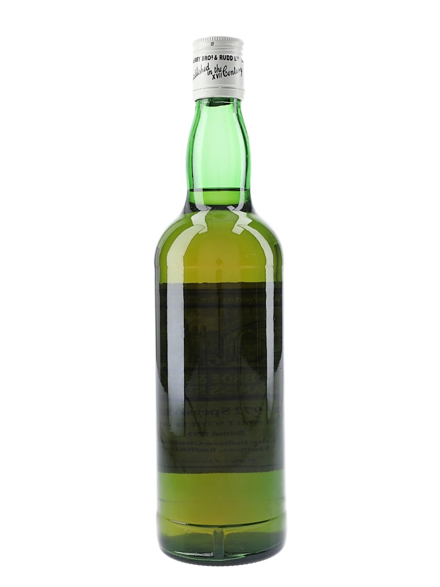 A bottle of Dufftown-Glenlivet 1972 Speyside Single Malt Scotch Whisky This was distilled in 1972 and bottled in 1993 by Berry Bros. & Rudd.