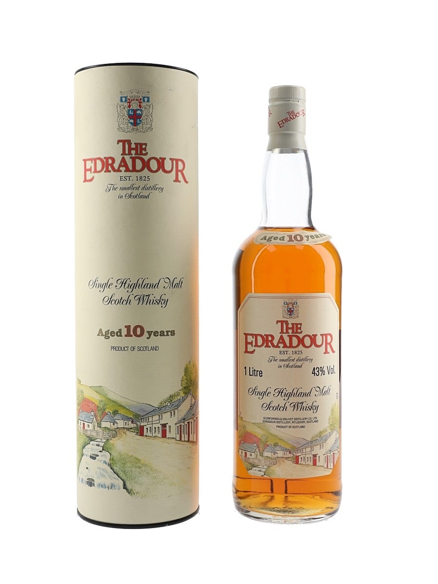 A litre bottle of Edradour 10 Year Old Highland Single Malt Scotch Whisky. We estimate this was bottled in the 1980s.