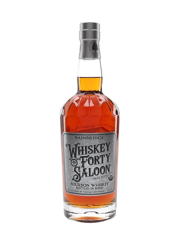 A bottle of Small Batch Whisky Forty Saloon distilled at Bainbridge.