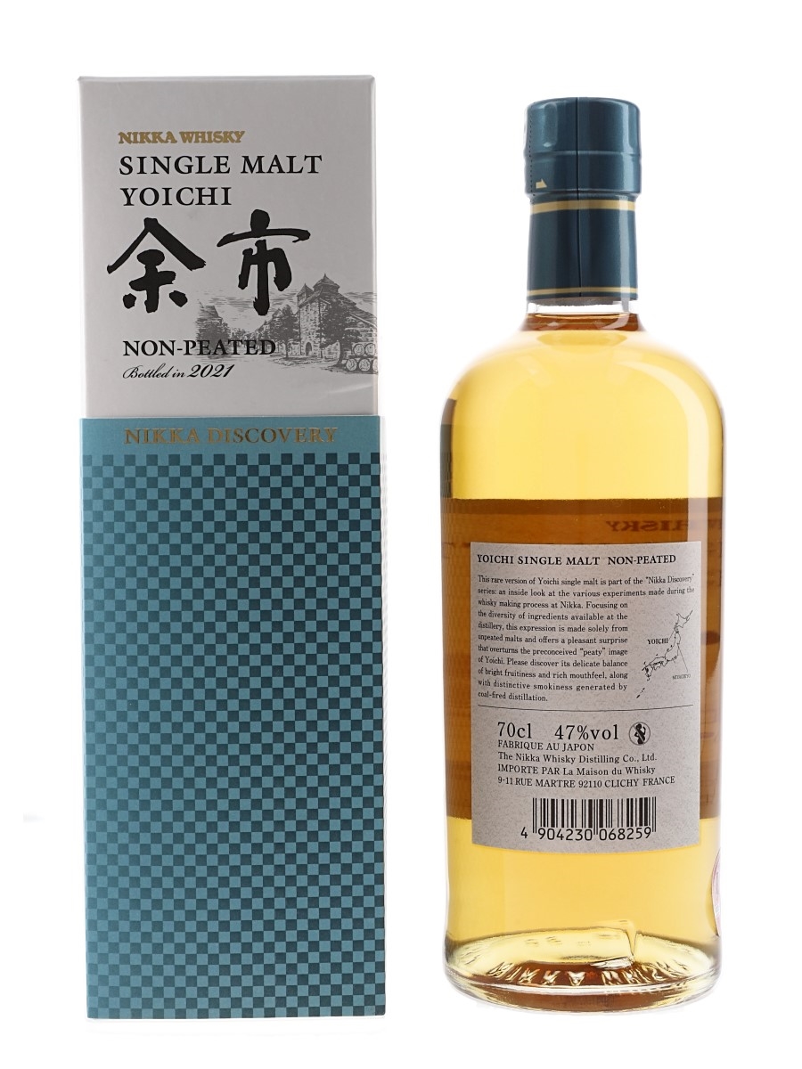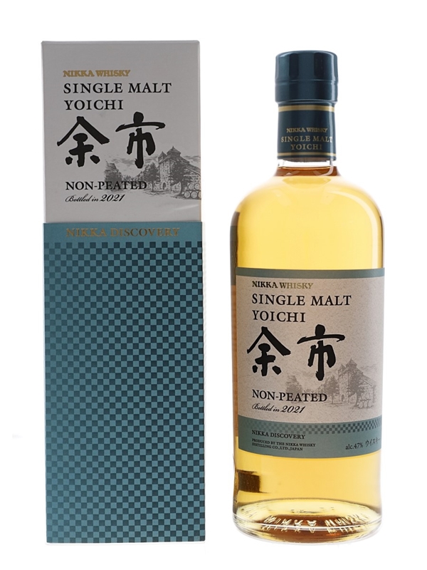 A bottle of Nikka Yoichi Non Peated Single Malt Whisky produced in Japan and bottled in 2021.