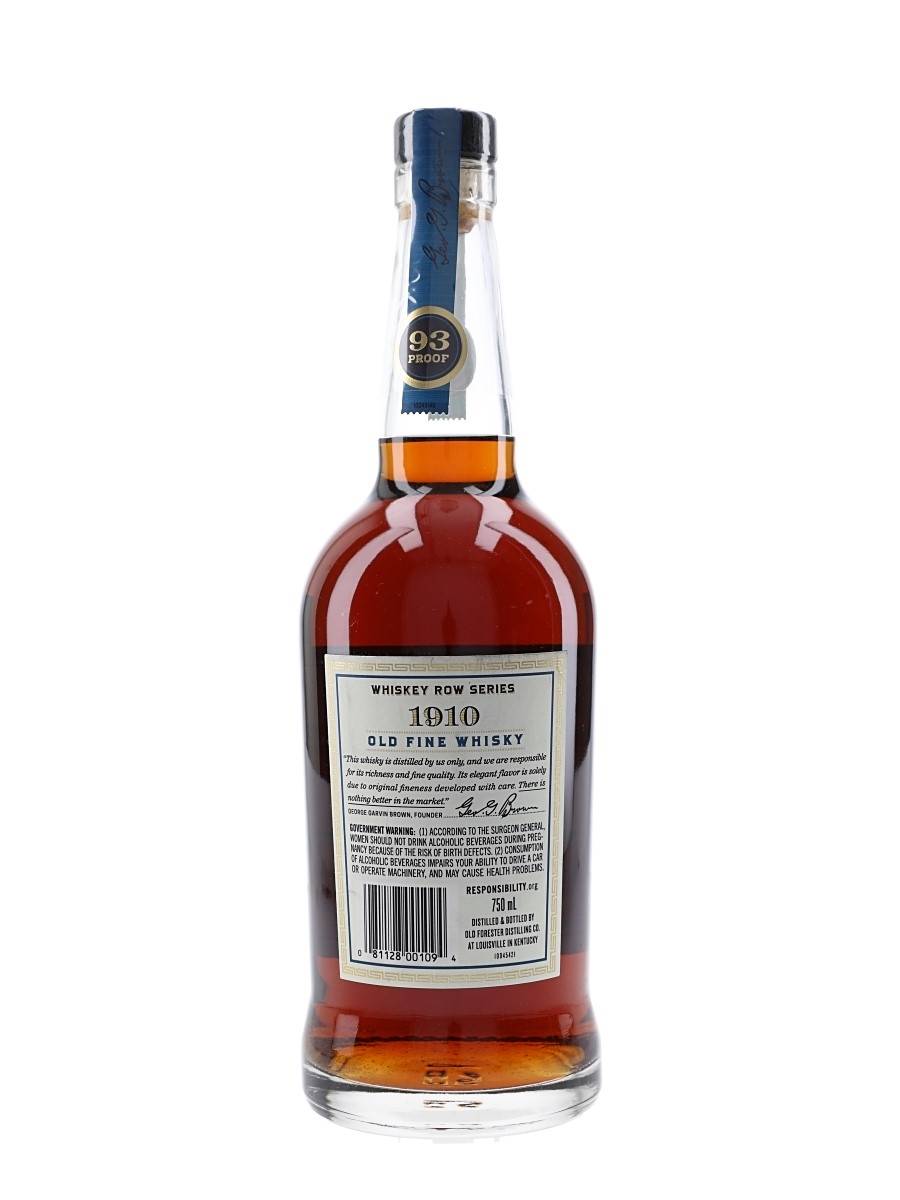 A bottle of Old Forester 1910 Old Fine Whisky Kentucky Straight Bourbon whiskey, bottled at 46.5% ABV