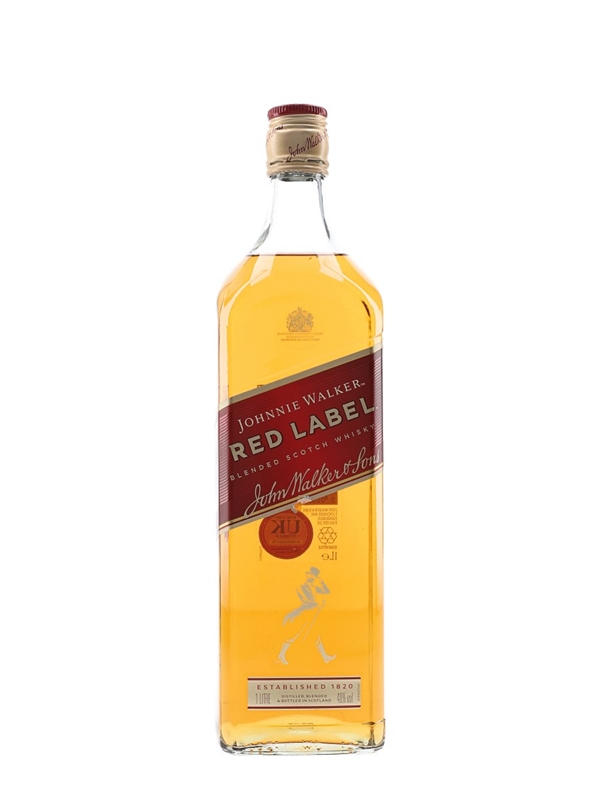 A litre bottle of Johnnie Walker Red Label Old Scotch Whisky, the world's best selling Scotch whisky.