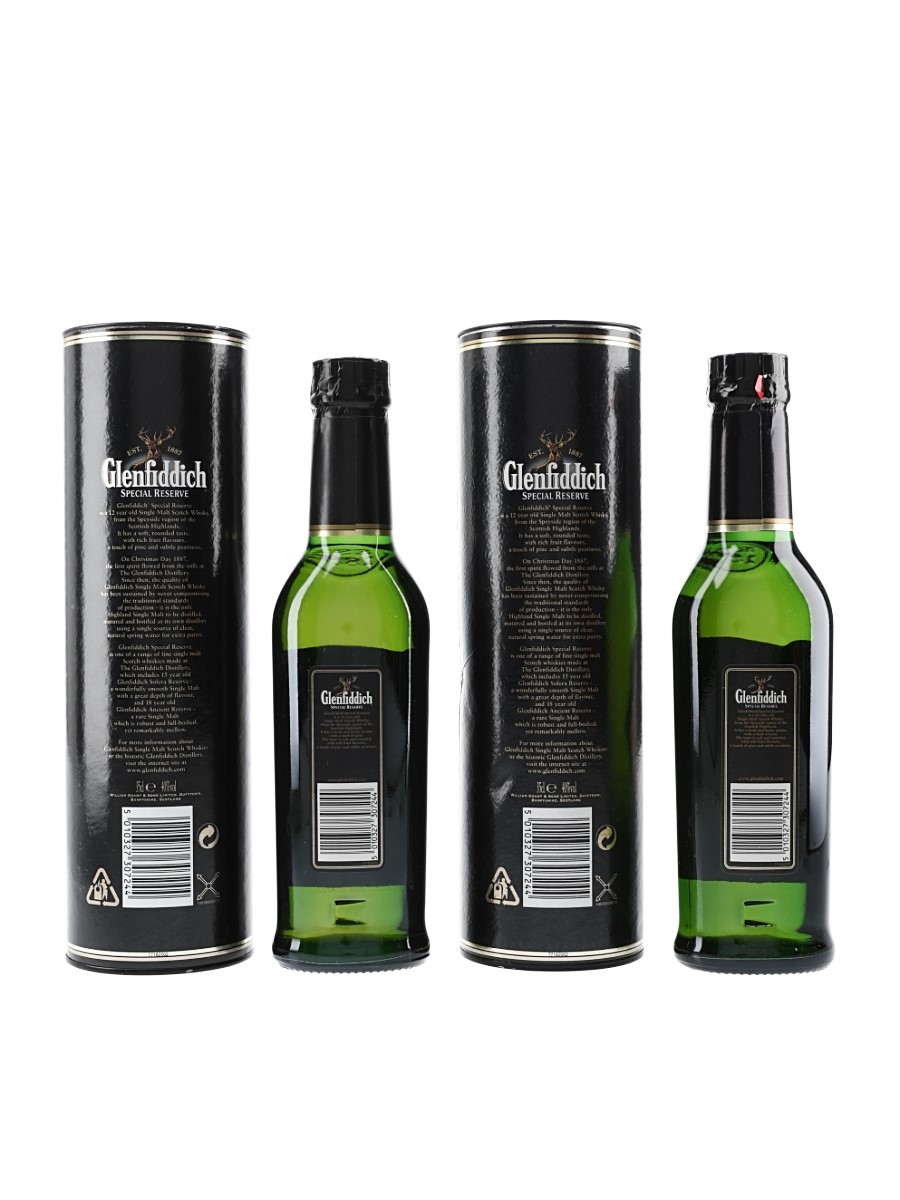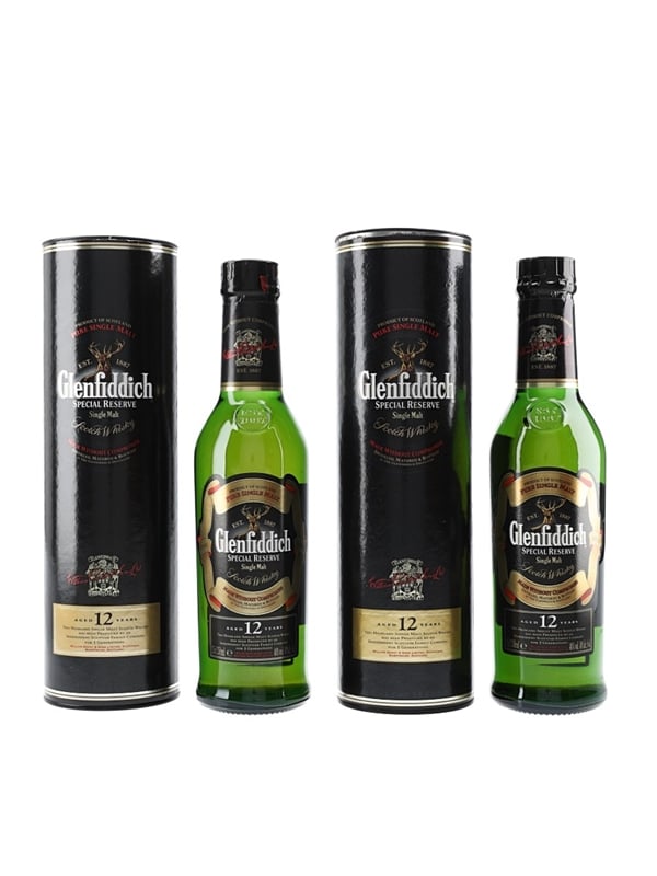 This lot contains two 35cl bottles of Glenfiddich 12 Year Old Special Reserve Single Malt Scotch Whisky. We estimate this was bottled in the 2000s.