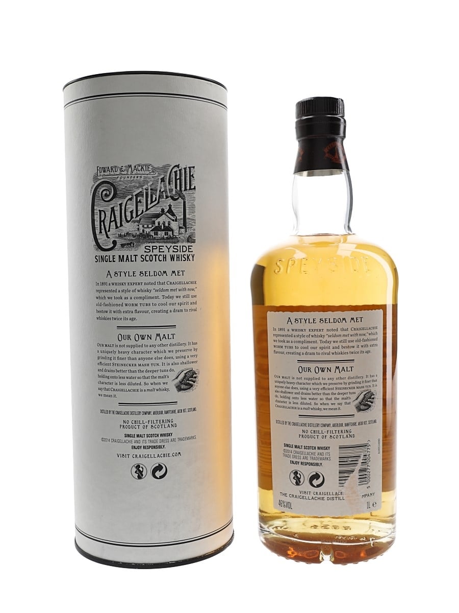 A litre bottle of Craigellachie 19 Year Old Speyside Single Malt Scotch Whisky, bottled from batch number 78-SC33.