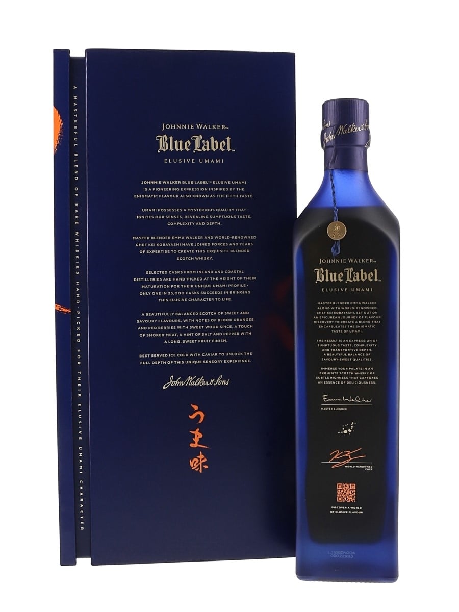 A bottle of Johnnie Walker's Blue Label Elusive Umami. This was made in collaboration with chef Kei Kobayashi.