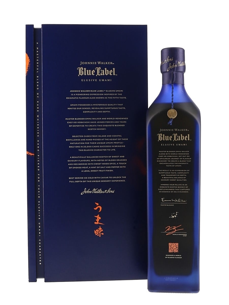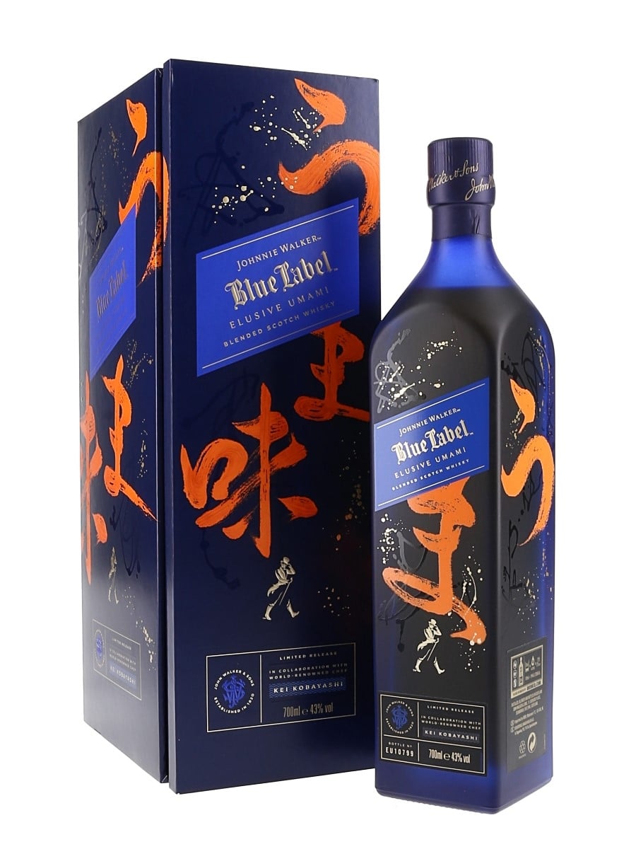A bottle of Johnnie Walker's Blue Label Elusive Umami. This was made in collaboration with chef Kei Kobayashi.