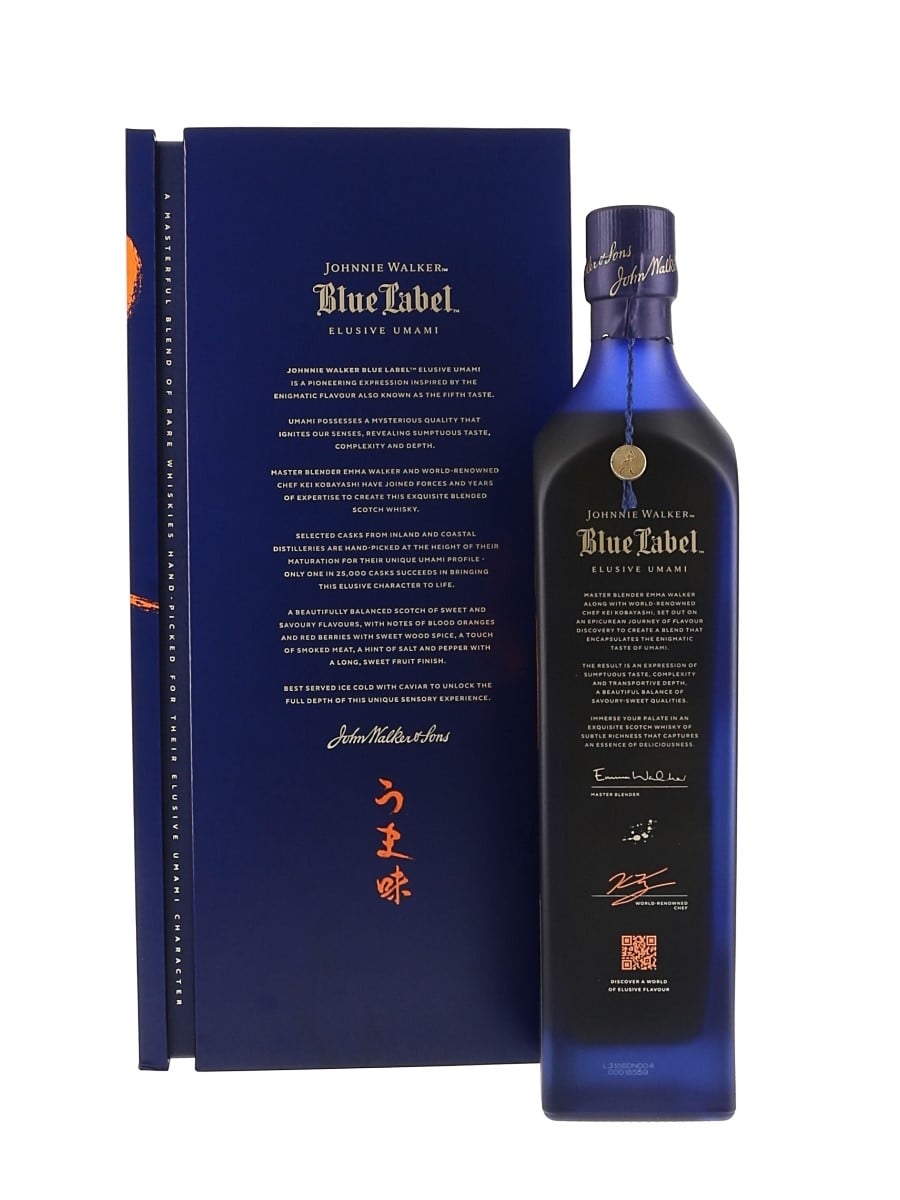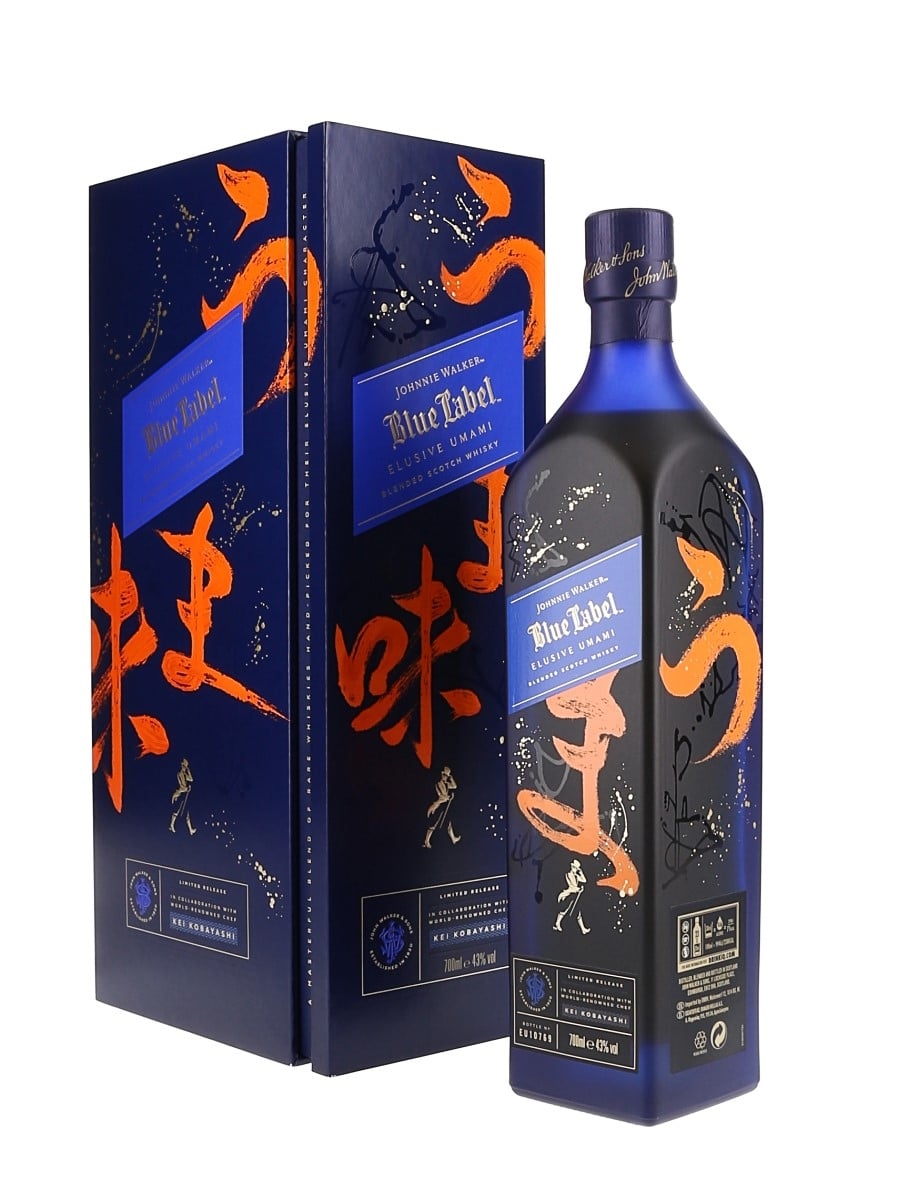 A bottle of Johnnie Walker's Blue Label Elusive Umami. This was made in collaboration with chef Kei Kobayashi.