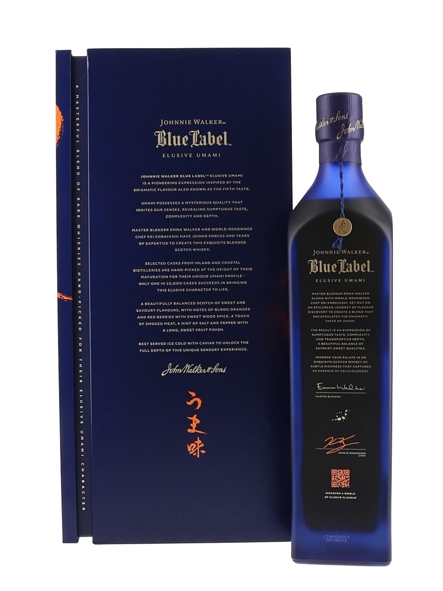 A bottle of Johnnie Walker's Blue Label Elusive Umami. This was made in collaboration with chef Kei Kobayashi.