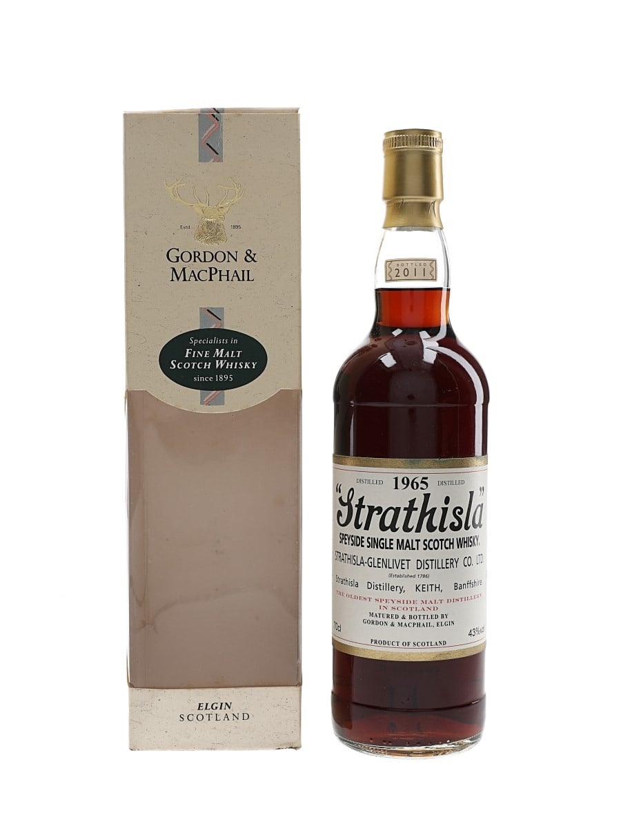 A bottle of Strathisla Single Malt Scotch Whisky. This was distilled in 1965 and bottled in 2011 by Gordon & MacPhail.