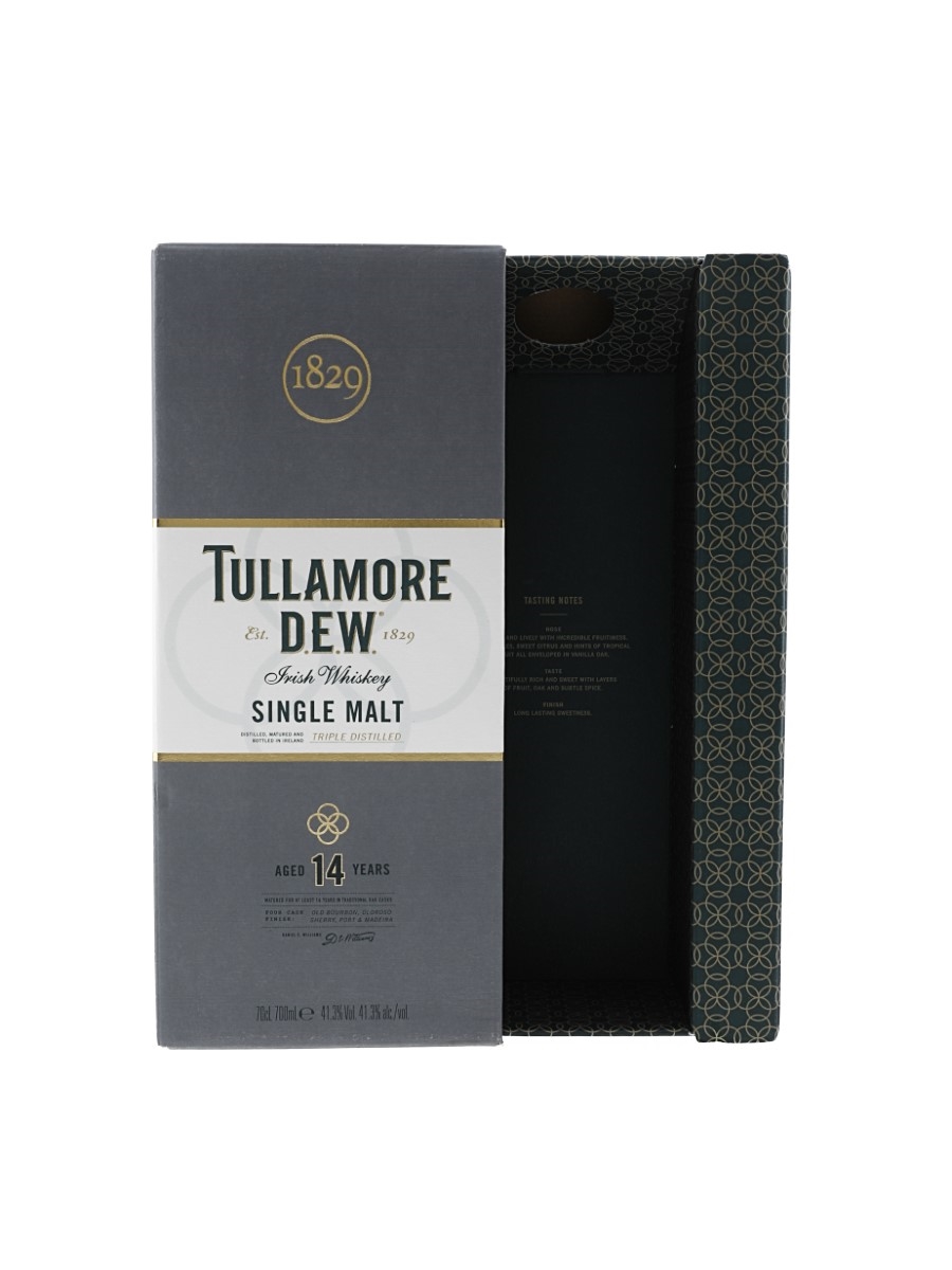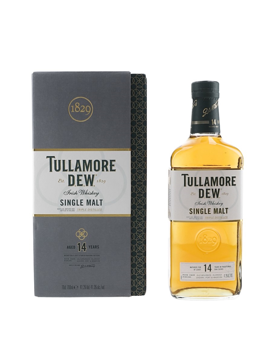 A bottle of Tullamore Dew 14 Year Old Single Malt Irish Whiskey. This was finished in Oloroso sherry, Port, Madeira and Bourbon casks for up to 6 months before bottling. The bottling code indicates this was bottled in 2022.