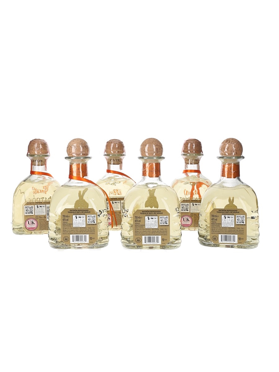 This lot contains six bottles of Patron Reposado, a premium Tequila made from 100% Weber blue agave.