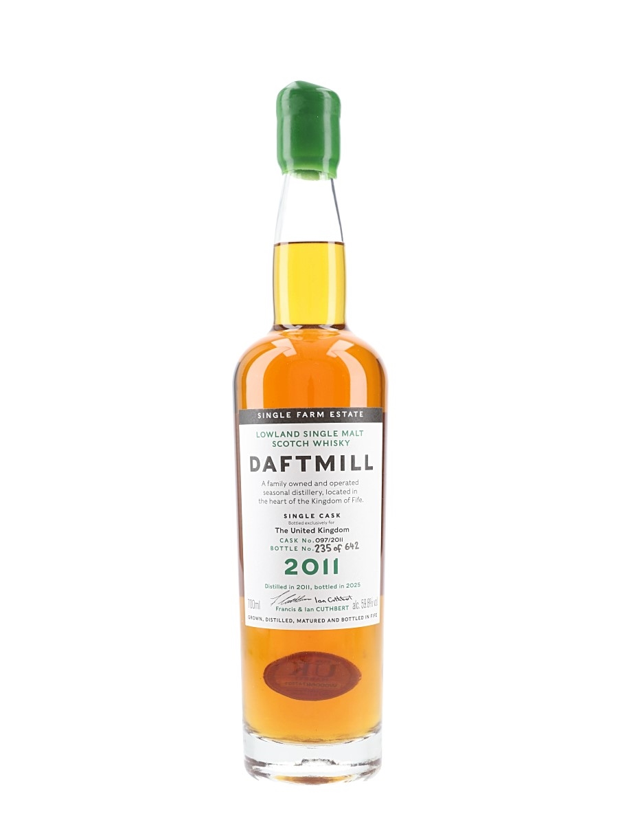A bottle of Daftmill Lowland Single Malt Scotch Whisky. This was distilled in 2011, matured in a single First Fill Oloroso Sherry Butt and bottled in 2025 at 59.8% ABV.