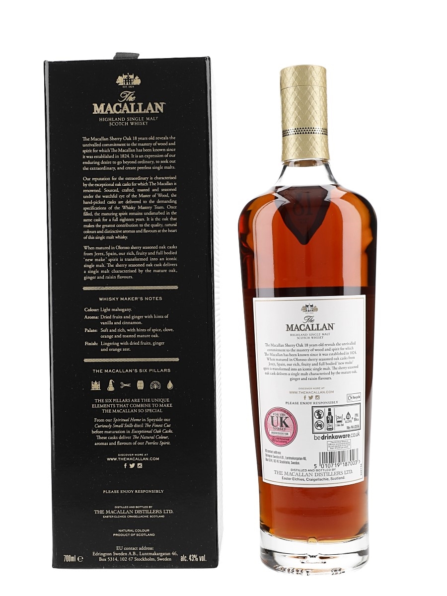Macallan 18 Year Old Sherry Oak Annual 2022 Release 70cl / 43%