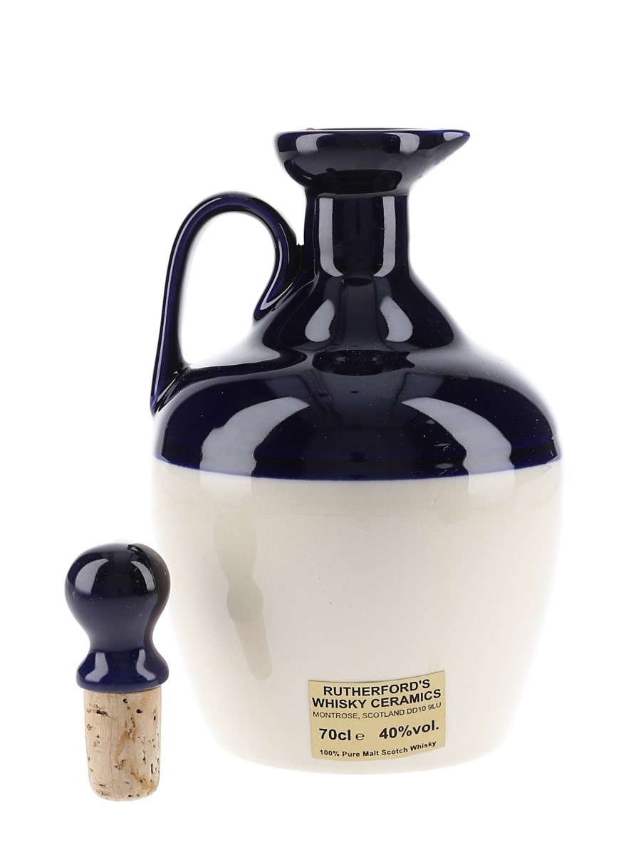 A bottle of Rutherford's Blended Malt Scotch Whisky presented in a ceramic Montrose Pottery decanter to celebrate Queen Ellizabeth Silver Jubilee.