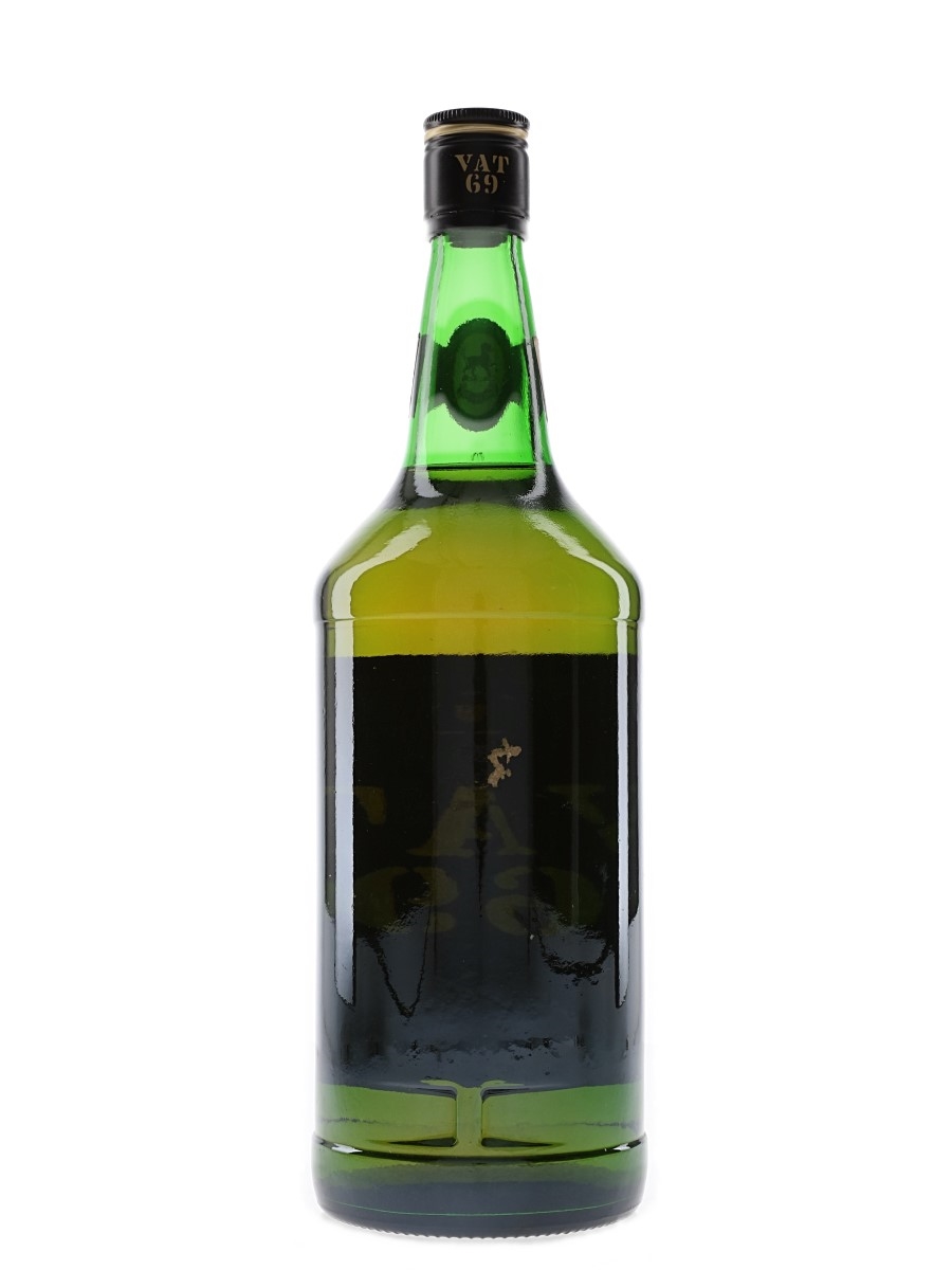 A litre bottle of Vat 69 blended Scotch whisky. We estimate this was bottled in the 1980s.