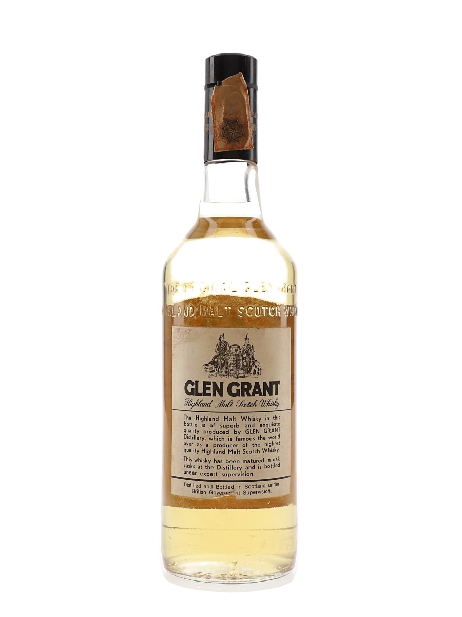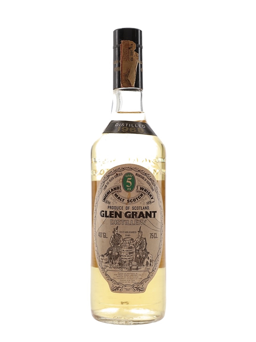 A bottle of Glen Grant 5 Year Old Highland Malt Scotch Whisky. This was distilled in 1968, bottled in the 1970s and imported by Giovinetti.
