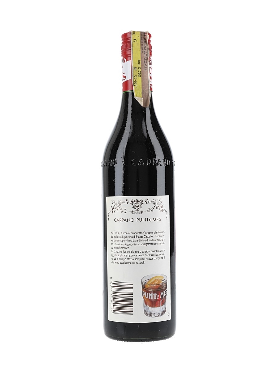 A bottle of Punt e Mes, the famously bitter red wine vermouth produced by Carpano in Turin, Italy. We estimate that this was bottled in the 1980s.