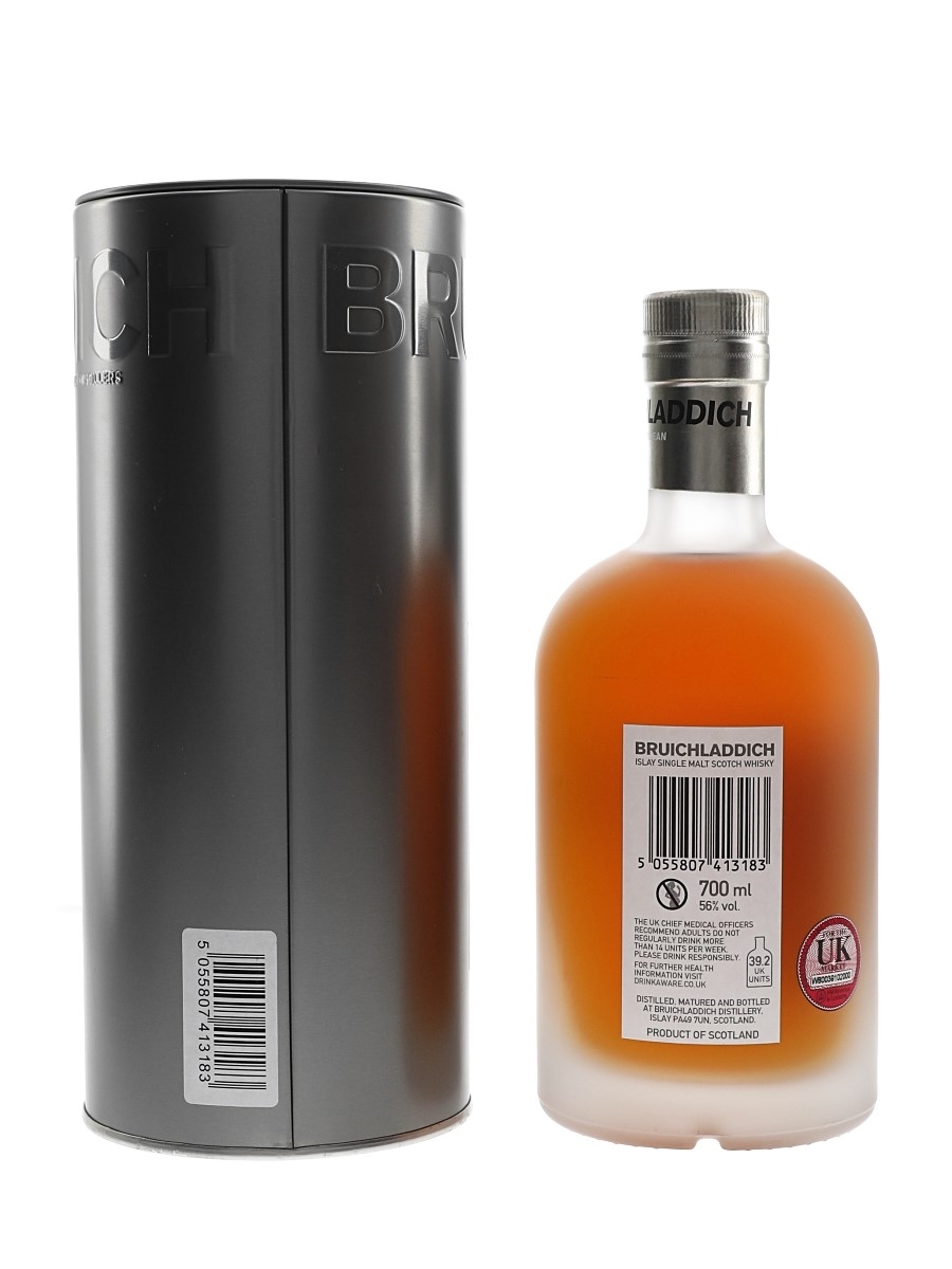 A bottle of Bruichladdich 11 Year Old Islay Single Malt Scotch Whisky from the Cask Evolution series: Exploration. This was distilled in 2008, matured in a French wine cask and bottled at cask strength 56% ABV in 2019 exclusively for the Laddie crew.
