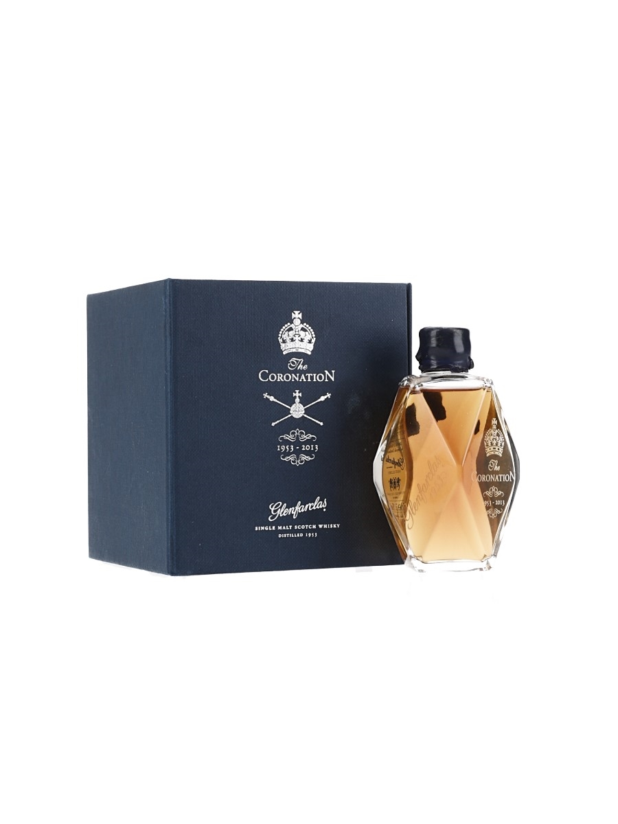 A miniature bottle of Glenfarclas 1953 Coronation Single Highland Malt Scotch Whisky. This was released in 2013 to celebrate the 60th anniversary of Queen Elizabeth II's coronation.