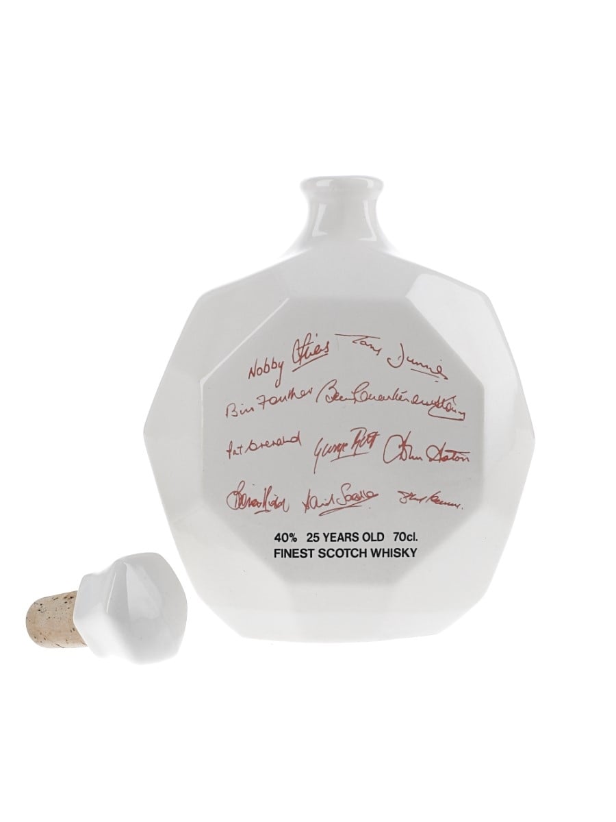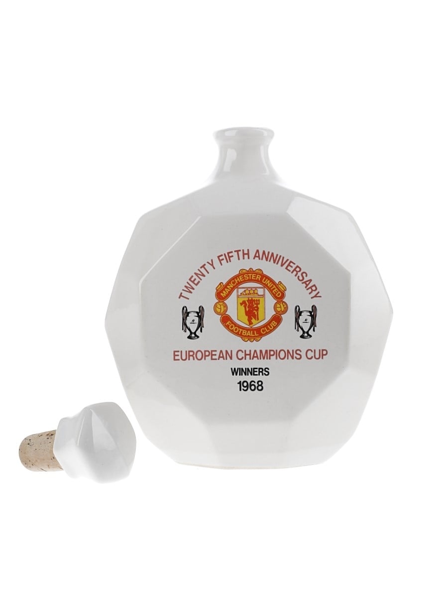 A bottle of 25 Year Old Blended Scotch Whisky, presented in a ceramic decanter and released to celebrate the 25th anniversary of the 1968 European Champions Cup.