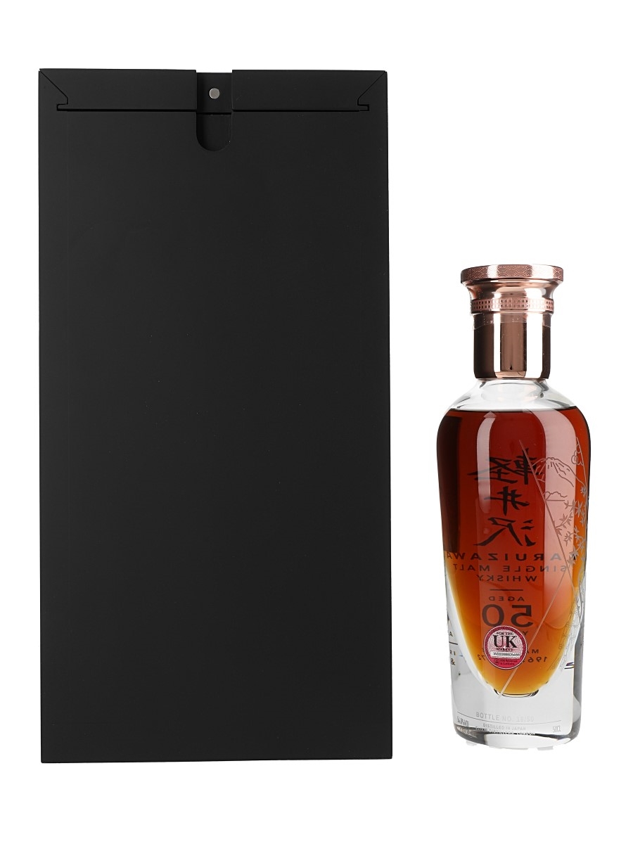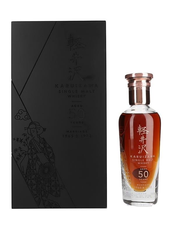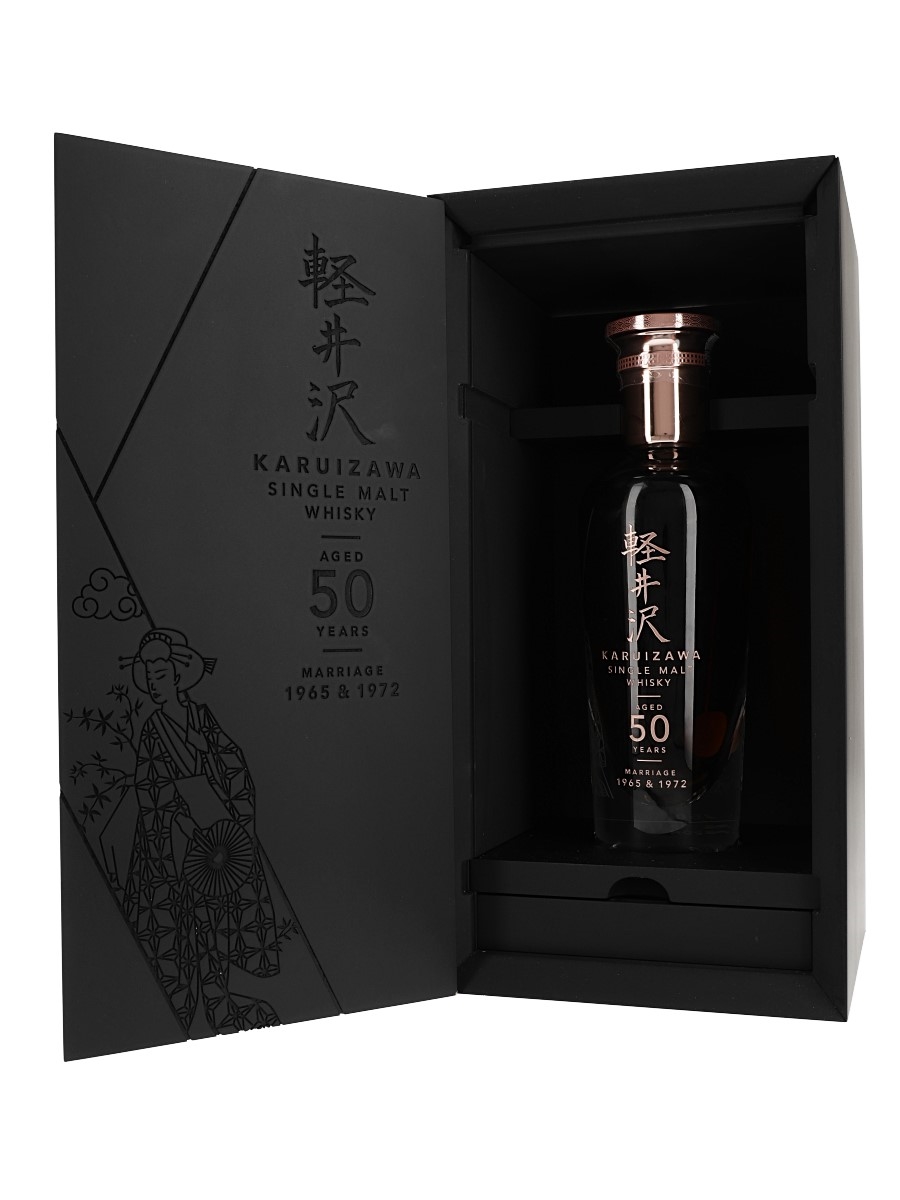 A 50cl bottle of Karuizawa 50 Year Old Single Malt Japanese Whisky. This bottling is a marriage of Karuizawa 1965 and Karuizawa 1972. The Karuizawa 1965 was matured in sherry casks and bottled in 2015. The Karuizawa 1972 was matured in red wine casks and bottled in 2012. After bottling these two whiskies were combined to create a limited run of 50 bottles.