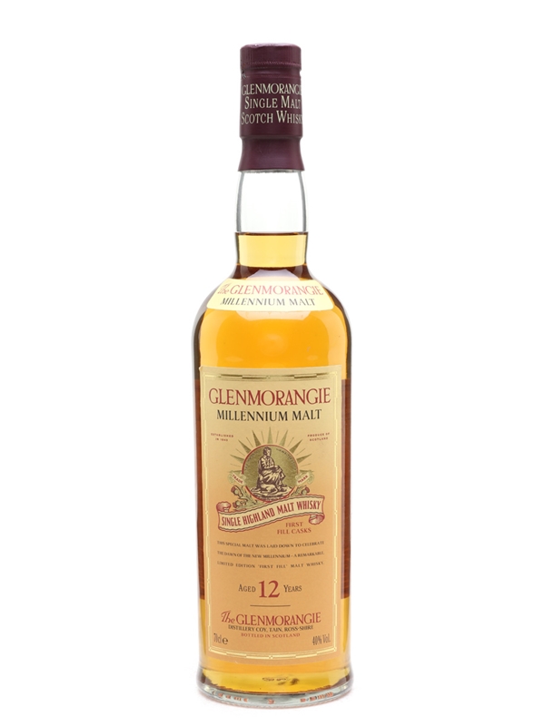 A bottle of Glenmorangie 12 Year Old Millennium Malt. This was aged in first fill casks and released to commemorate the Millennium.